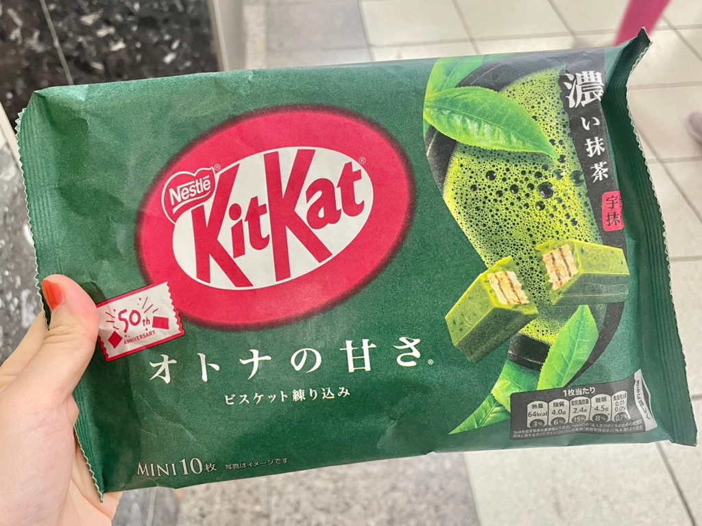 同樣名列日本伴手禮人氣排行榜前段班的kitkat,品牌至今已有迷你大人的甜味濃抹茶、迷你伊藤久右衛門宇治抹茶這2款經典口味,而最新的抹茶拿鐵味(抹茶ラテ味)則是完美融合了牛奶溫潤的口感和宇治抹茶高雅的香氣,化在口中的感覺就像真的在喝抹茶拿鐵一樣呢!