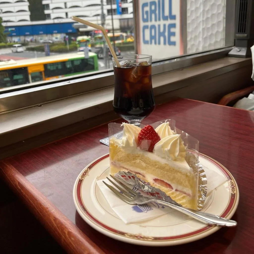 老字號咖啡廳TAKASE(タカセ)位在池袋站東口正對面,一樓販賣麵包、三明治等烘培西點,二樓則是傳統喫茶店,提供聖代和各式經典甜蛋糕,約1,000日圓左右就能享用飲料配蛋糕的套餐組合。