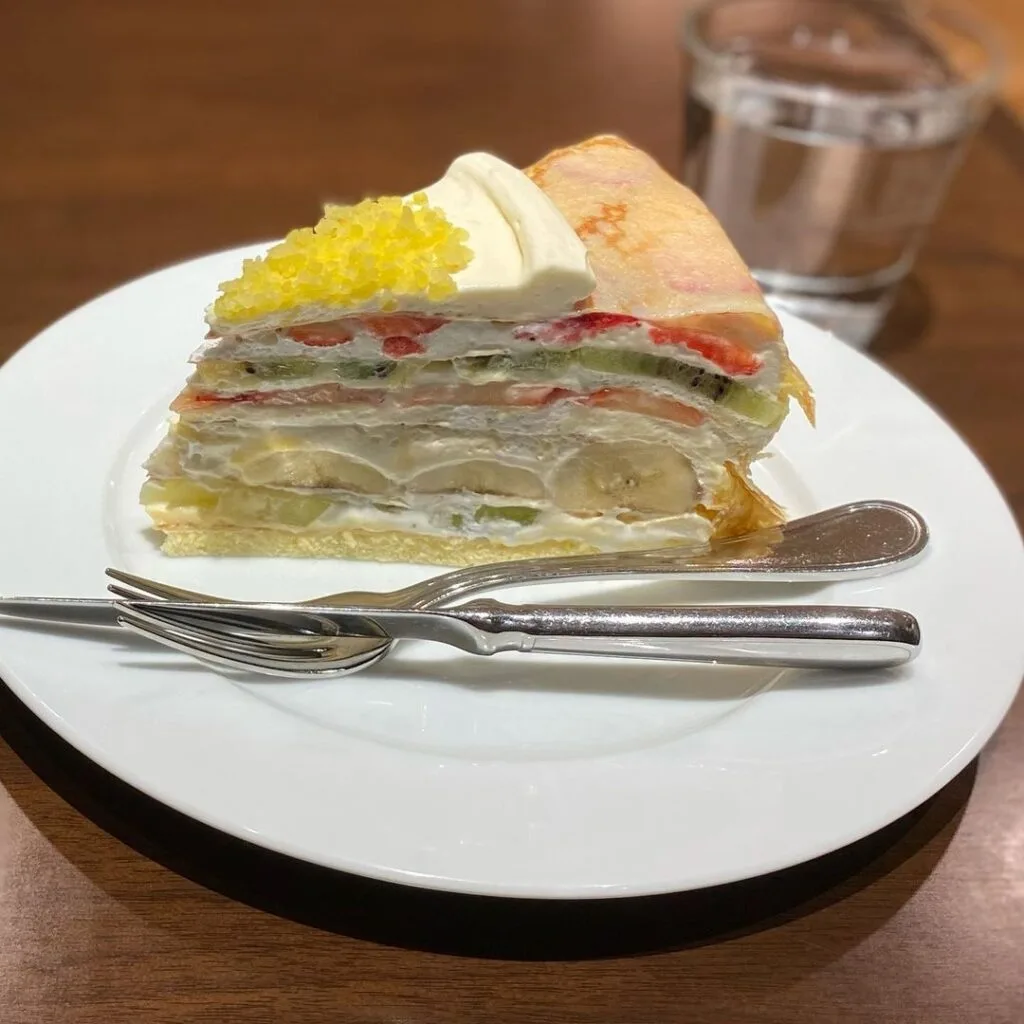 最推薦的即是料多到要滿出來的水果千層蛋糕(フレッシュフルーツケーキ)每一層鮮奶油間都夾著大量切片新鮮水果,每一口吃下去都是不一樣的酸甜驚喜;另外小編也私心推薦他們家草莓蛋糕,不只切片比起他家大一個尺寸,也能嚐到草莓完整的鮮甜滋味。