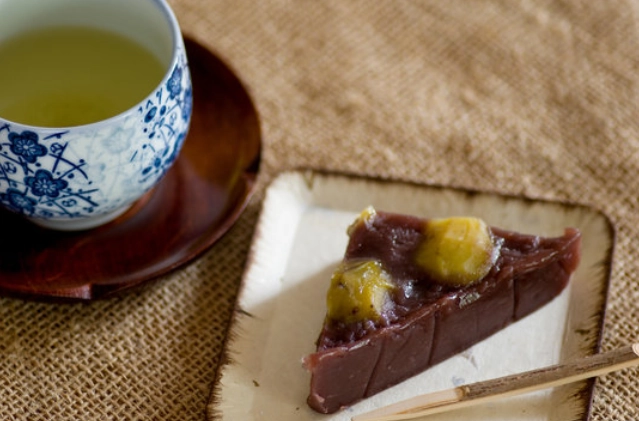 羊羹剛誕生時,還沒有加入寒天強化凝固效果,這時是藉由黏性較強的片栗粉發揮凝結功能。在將砂糖、紅豆泥等材料拌煮完成後,包入葉子或模具裡,透過熱水蒸的方式使其成型。