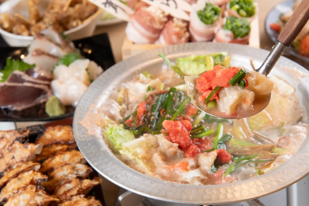 如果回程想在川越車站附近覓食,博多酒場 Airashika便是不錯的選擇。店內以紅燈籠與木質元素營造出福岡屋台的熱鬧氛圍,菜單則網羅牛腸鍋、鐵鍋餃子、炙燒明太子與博多豚骨拉麵等九州經典料理。更吸引人的是,酒類價格從88日圓起跳,最高也不超過300日圓,價格相當親民,讓日本自由行新手也能輕鬆體驗地道居酒屋文化。