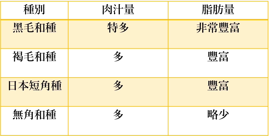 不同種和牛的特徵
