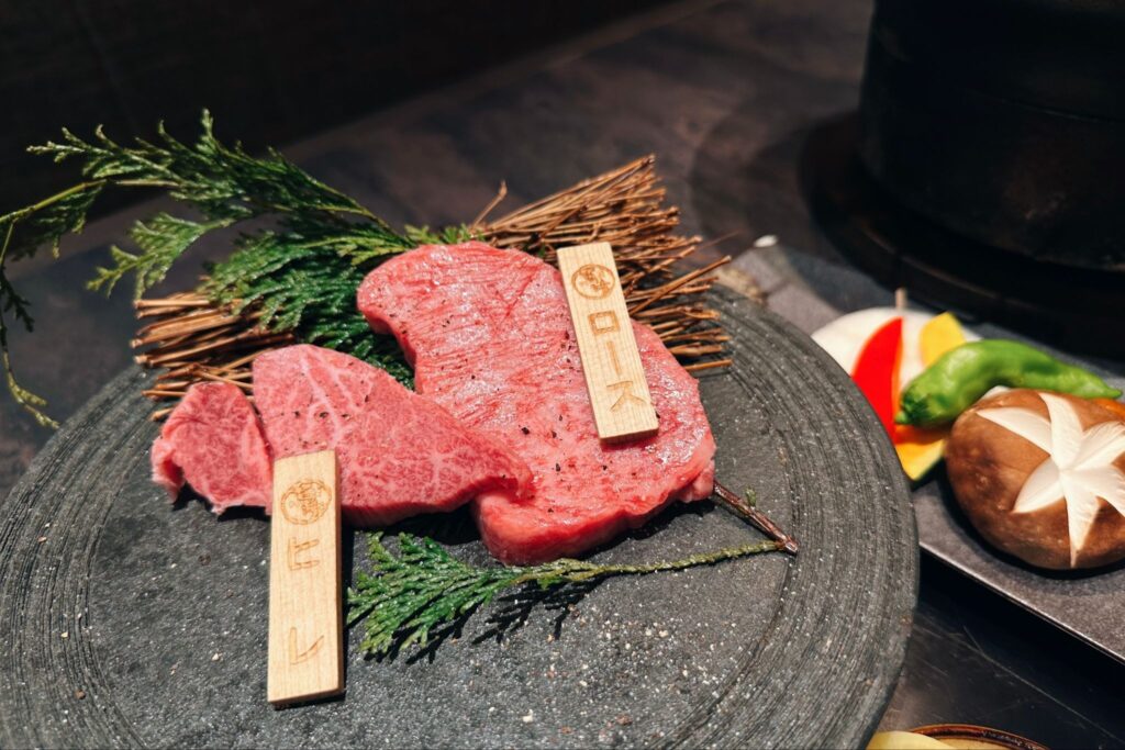 在100頭飛駝牛中,A5等級的牛約佔2成,而頂級的最飛牛甚至少於3頭,可見其有多珍稀。馬喰一代主要將最飛牛以炭燒燒肉方式提供,厚切的肉片經過火烤溶出甜美油脂,入口即化並釋放鮮美肉香,夢幻口感令人魂牽夢縈。