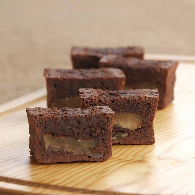 在濃醇的巧克力基底裡加入了蘋果酒,再與青森縣產的蘋果乾一起蒸煮,最後再送進烤箱。因為搭配了一點酒的香氣以及蘋果的酸甜感,吃起來不會只有巧克力的甜膩,而是整體風味清爽,但又能在嘴巴裡充滿兩種食材的濃厚香氣。蘋果王國做出來的蘋果甜點料理就是特別不一樣呀!