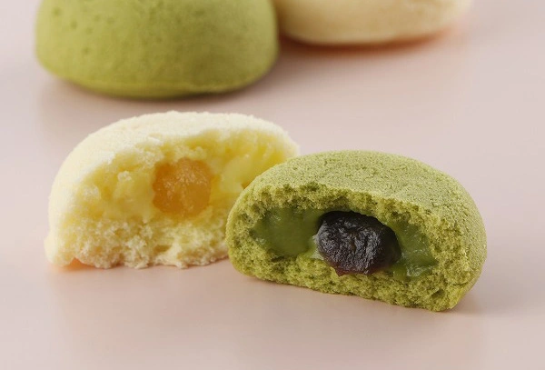 抹茶控絕對不可以錯過的就是這一個!在軟綿的蛋糕中包覆的是濃郁的抹茶以及卡士達醬,綜合了香甜的口感與抹茶稍微帶苦的滋味,卻剛好因此不過於甜膩,中間夾帶了一小塊紅豆餡更增添整體風味,就算是不喜歡紅豆餡的人都會覺得好好吃的多層次口感,食探小編真的非常推薦這一款!另外這款和菓子燒包裝也超級可愛,也推出了蘋果口味和抹茶口味的綜合禮盒,當作伴手禮送人真的是再適合不過了!