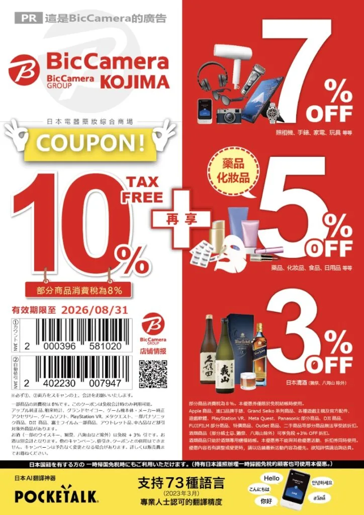 【2025-2026 BicCamera優惠券】退稅又折價好划算!